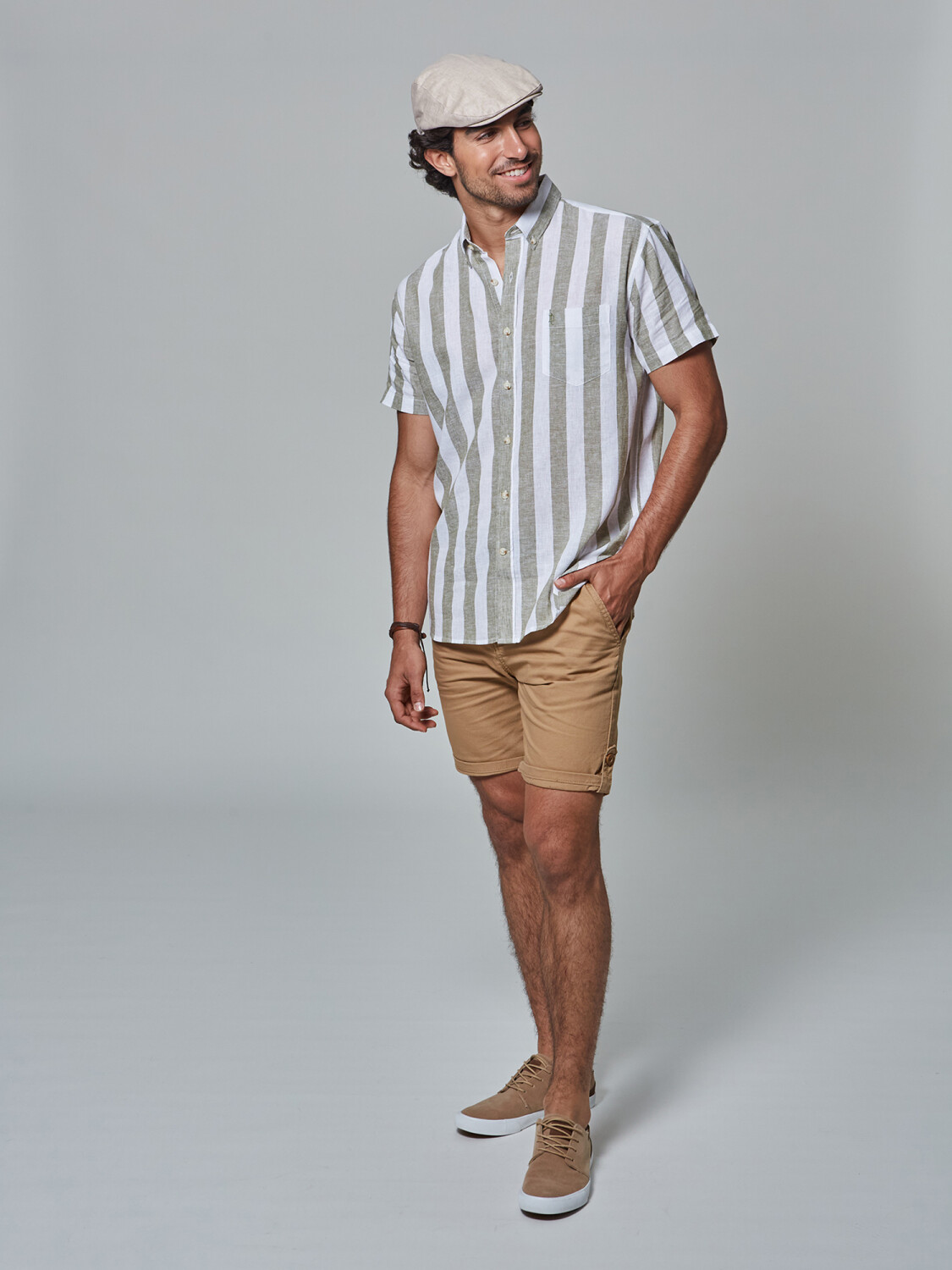 Detalles: regular fit, dos bolsillos delanteros, dos posteriores , un bolsillos relojero, botamanga con presilla. Aplique de badana. Incluye cinturón.