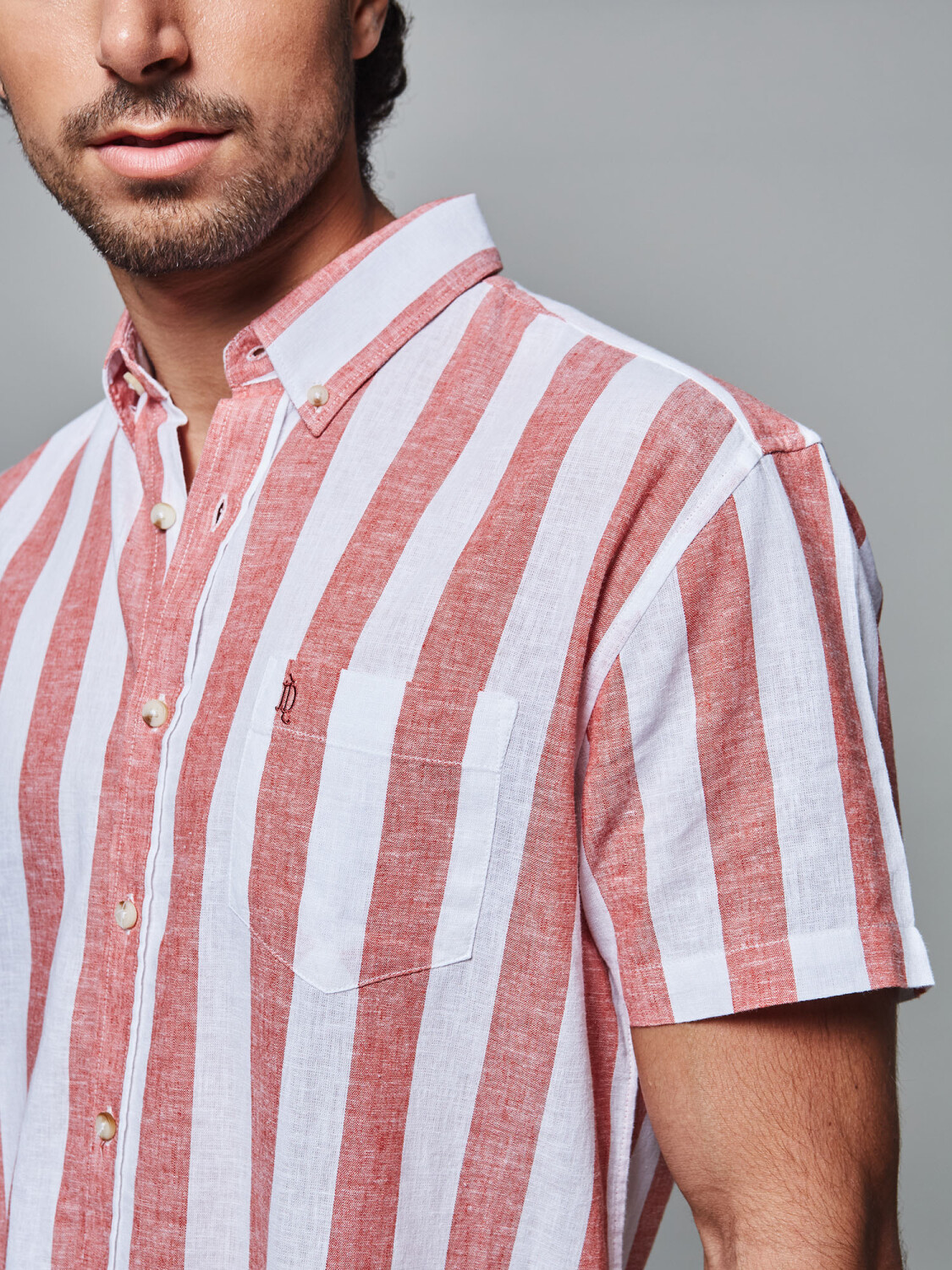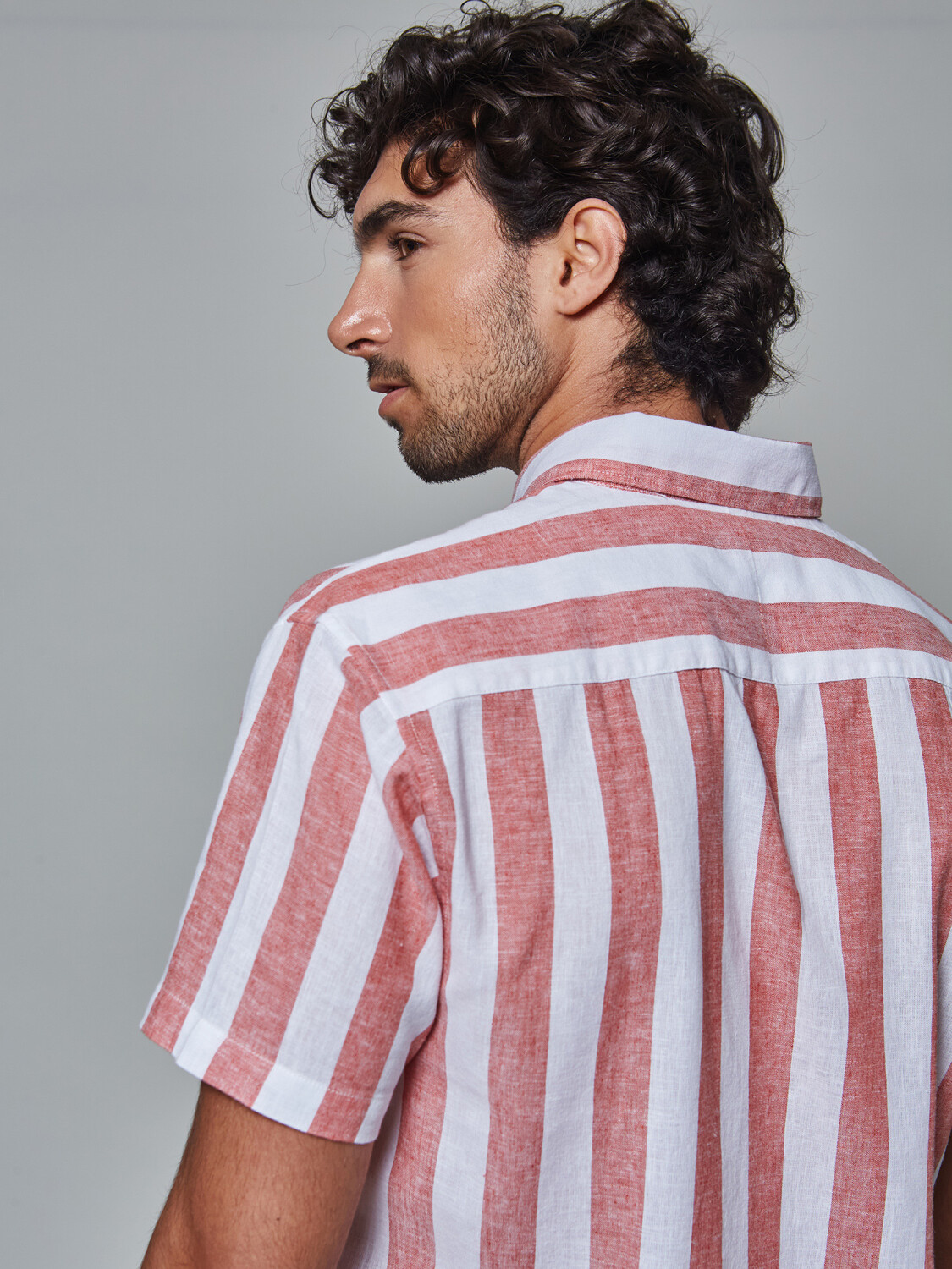 Camisa lino m/c rayada - ladrillo