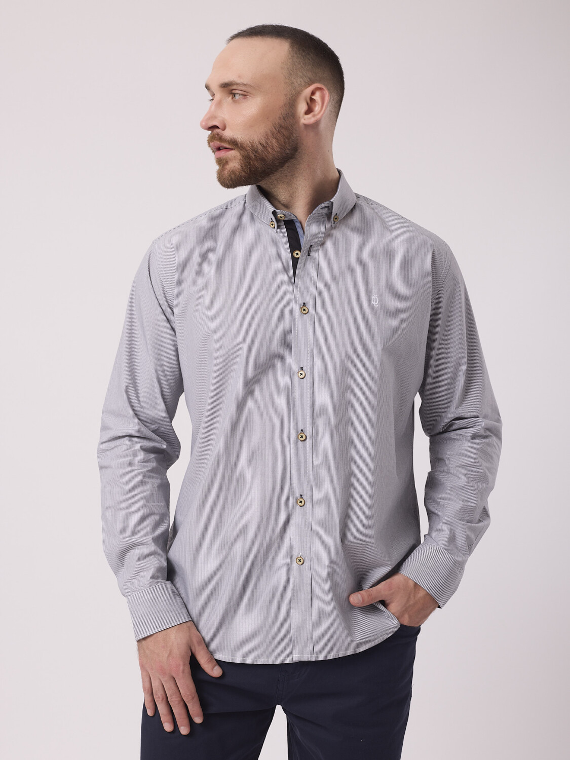 Camisa m/l rayada - negro