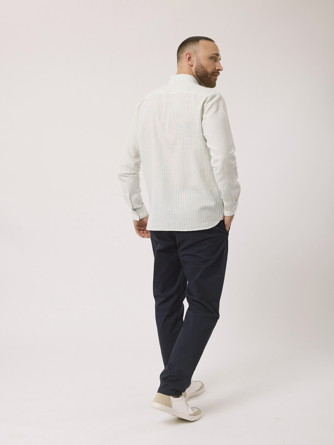 Camisa m/l rayada - verde claro
