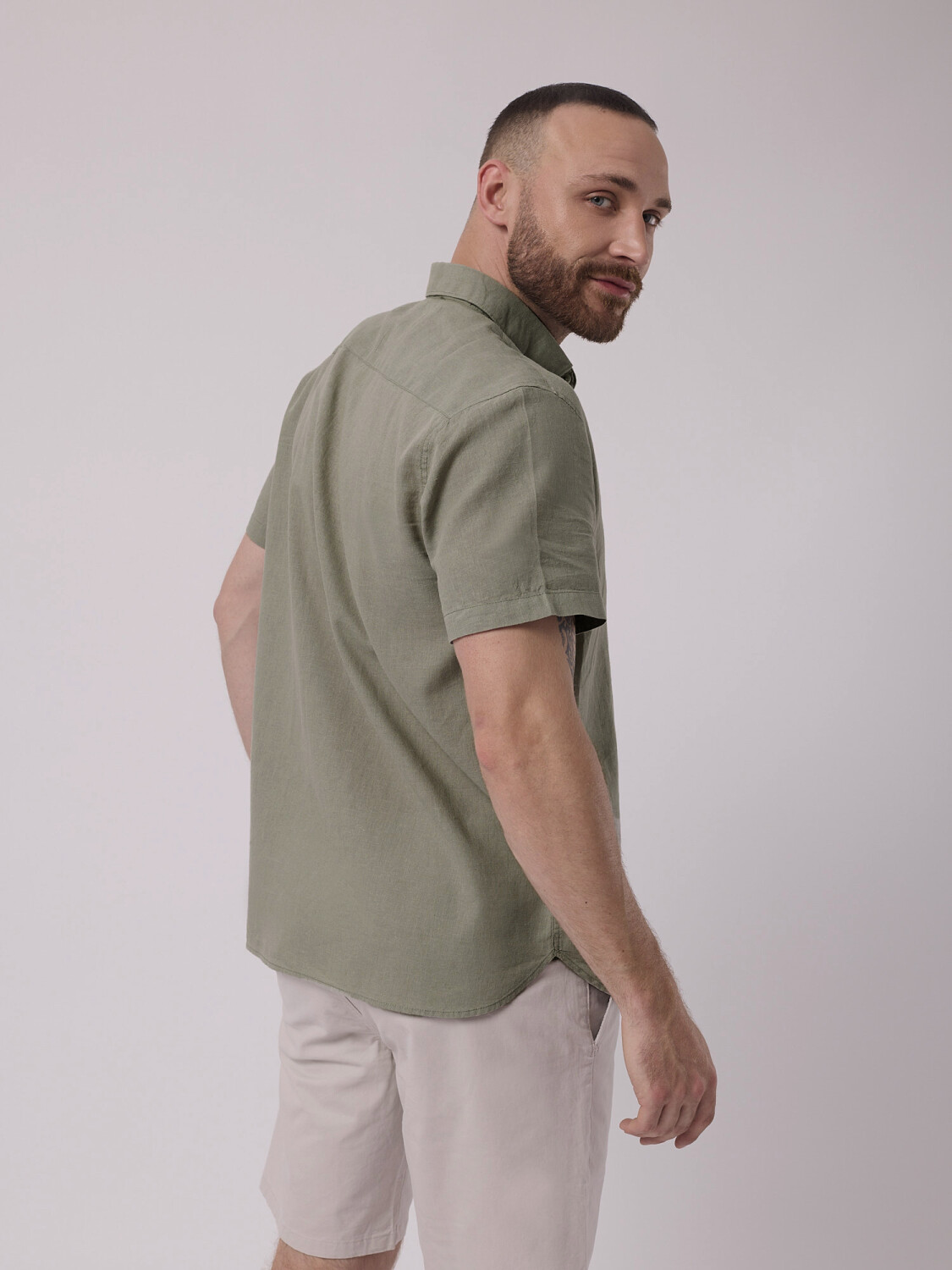 Camisa mc lino lisa - verde