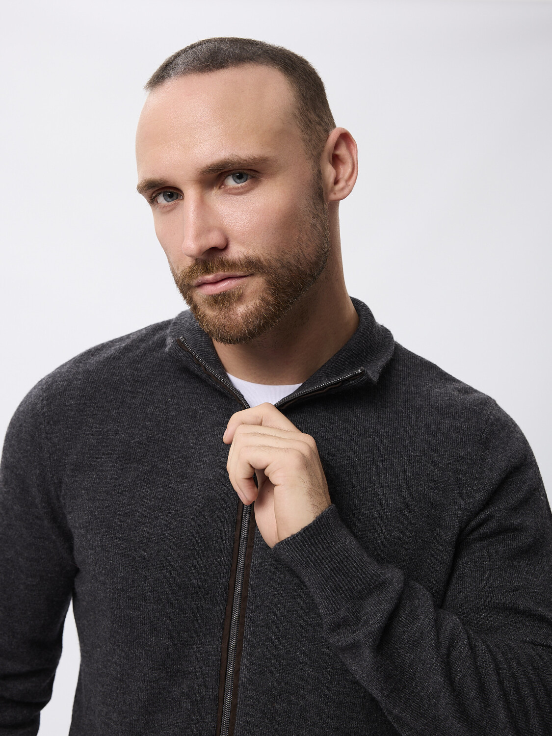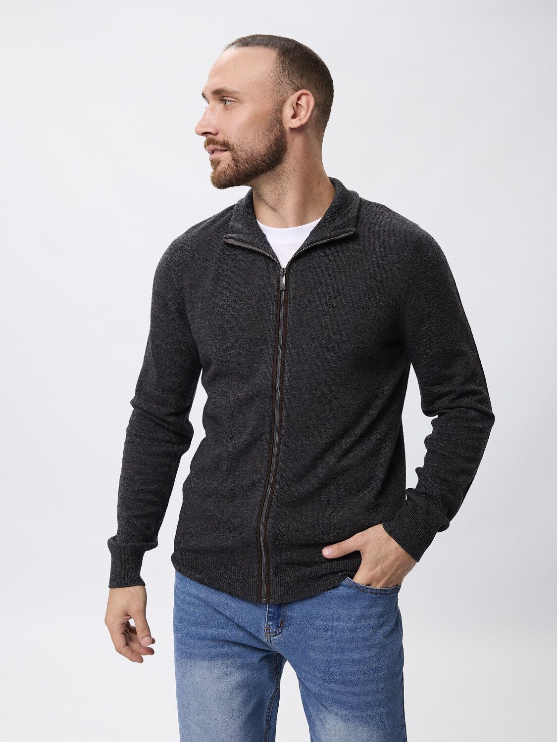 Campera tejida con cierre.