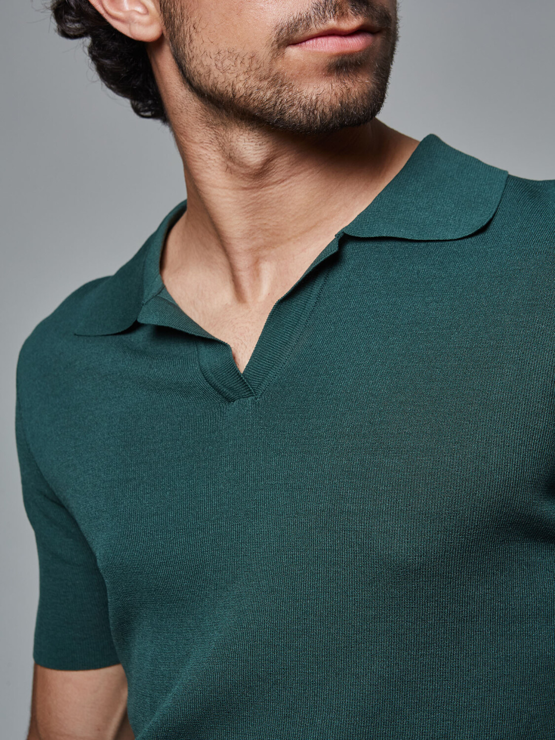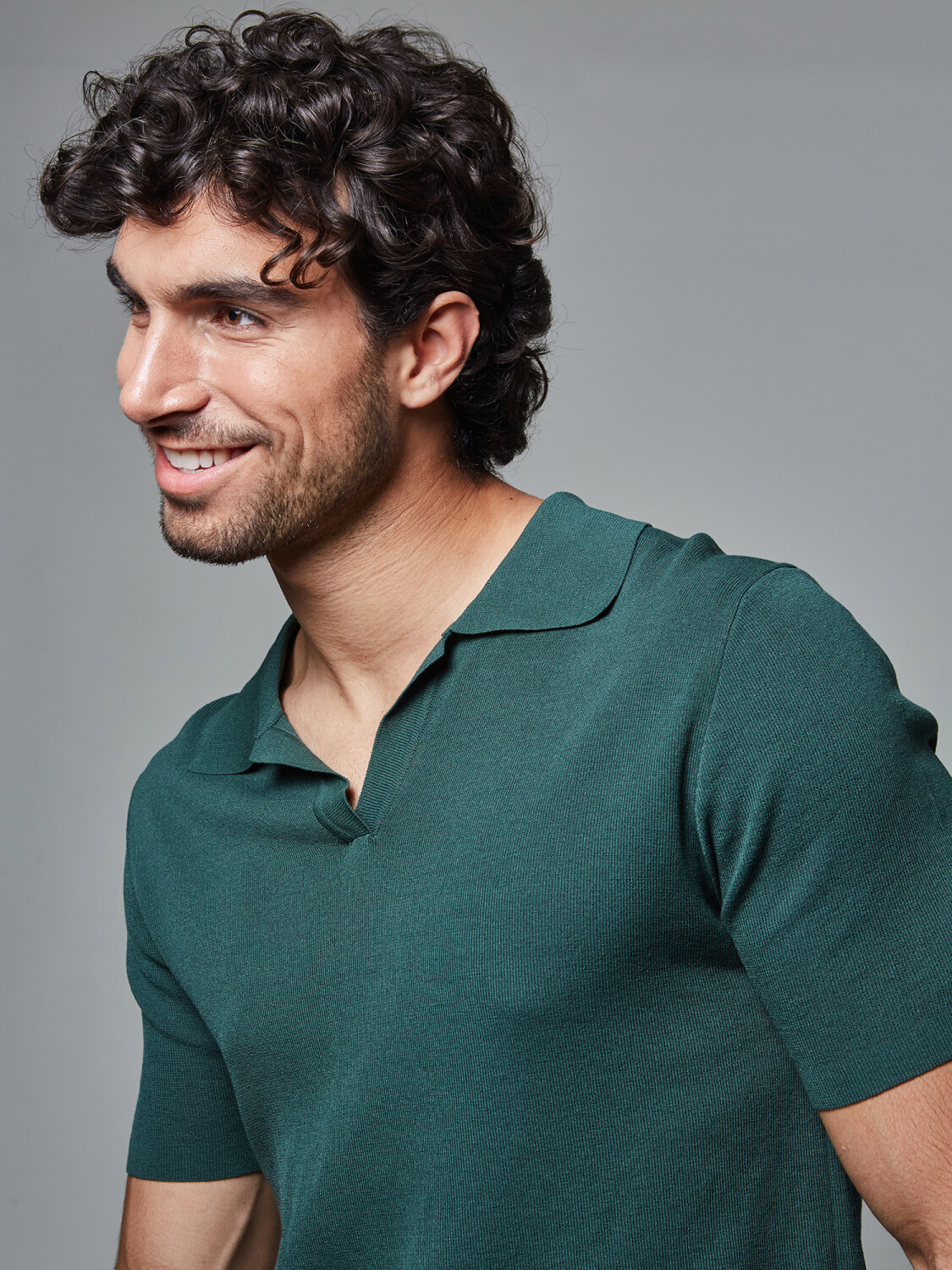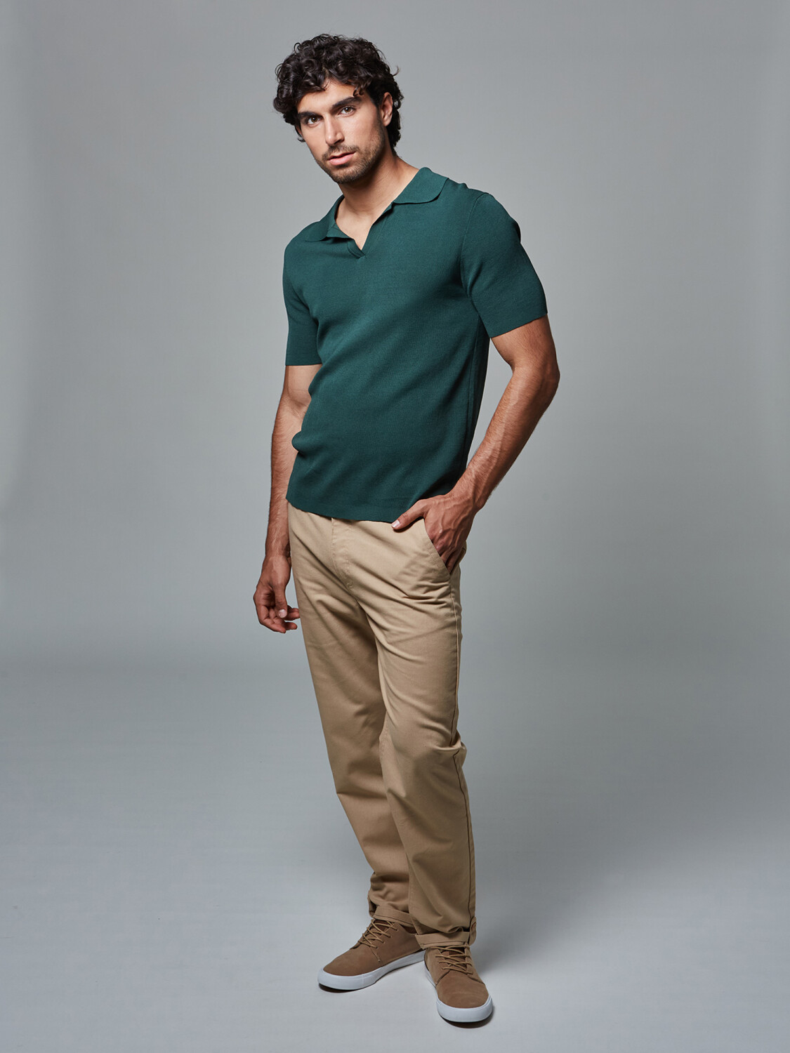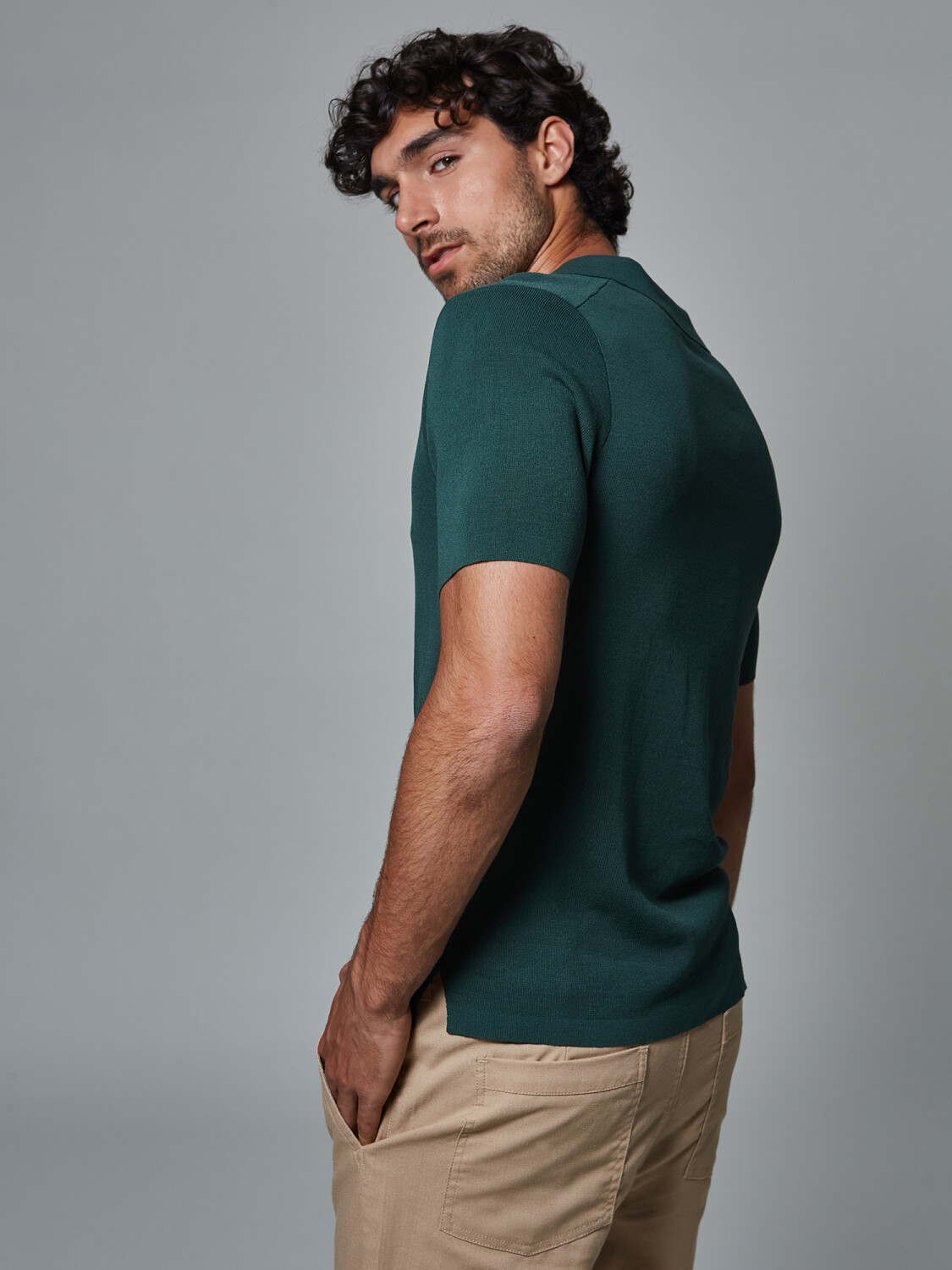 Detalles: cuello solapa con abertura frontal y manga corta. Terminaciones en rib.