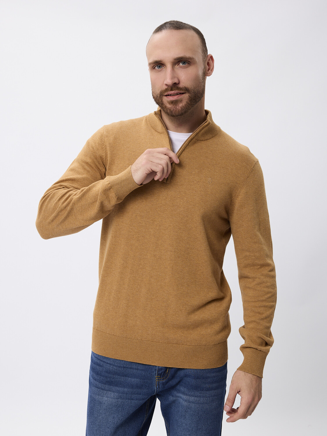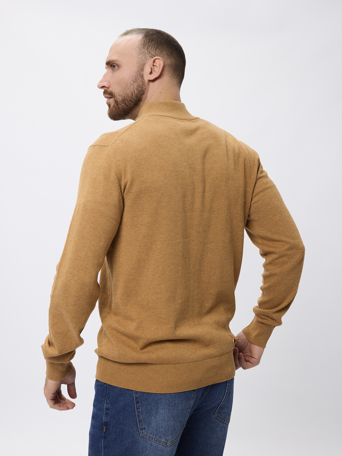 Sweater tejido con cierre - tostado melange