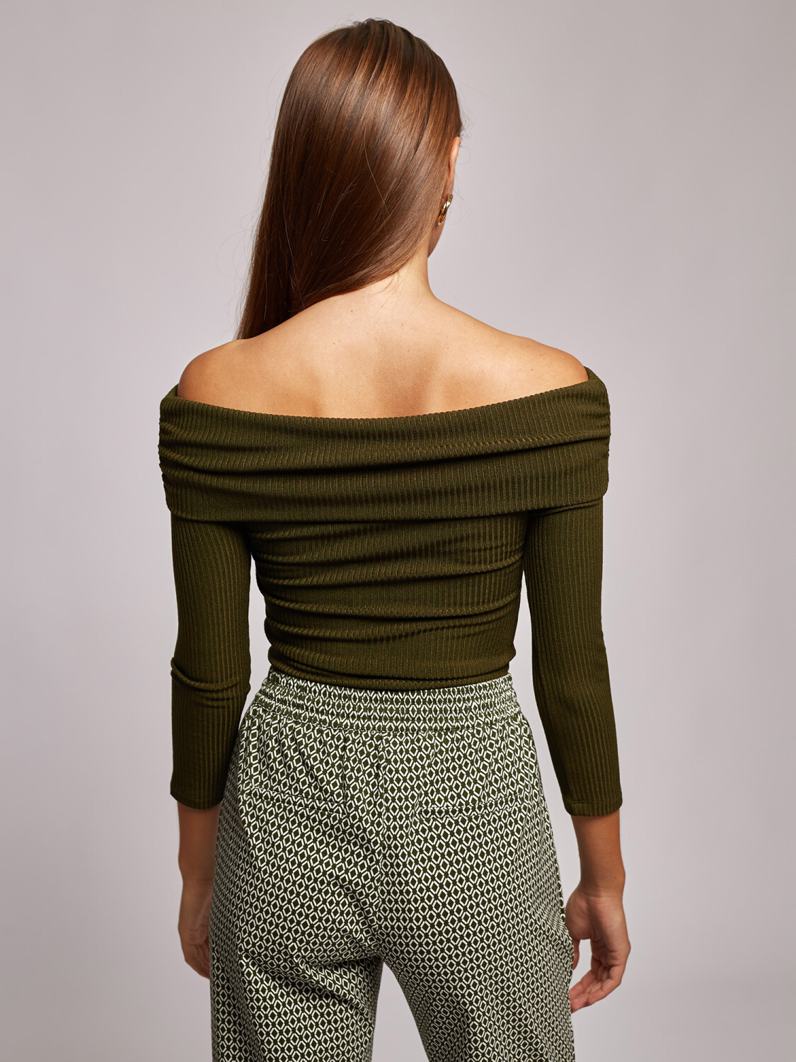 Detalles: regular fit, escote recto con vuelta y hombros descubiertos.